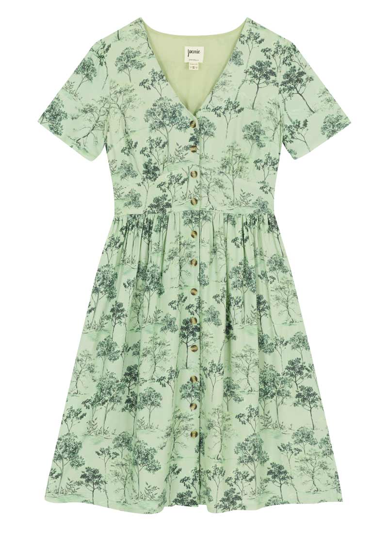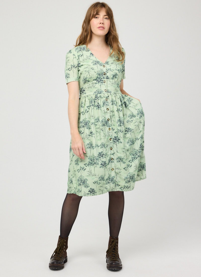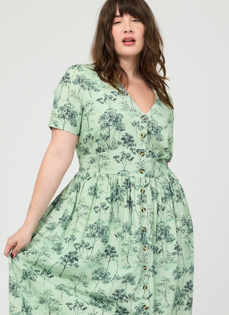Natalie Tree Print Button-Down Tea Dress