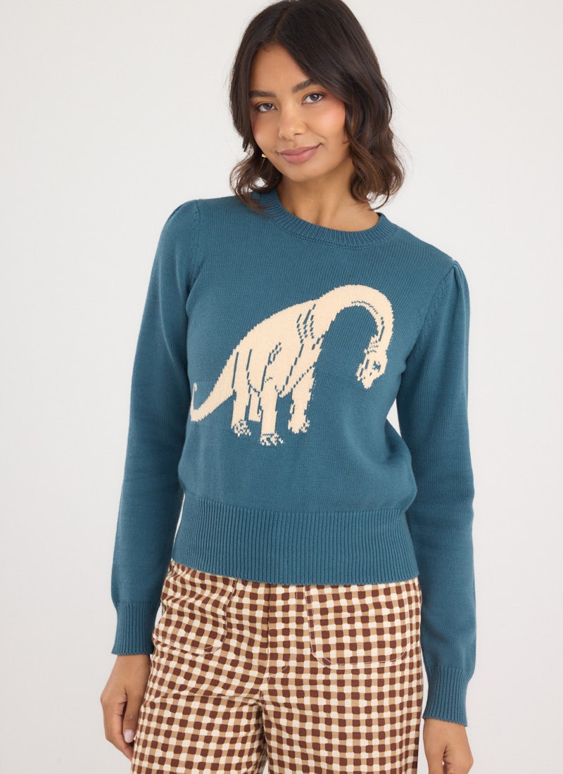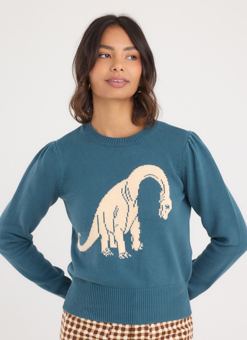 Andi Illustrated Dinosaur Print Shirt Dress