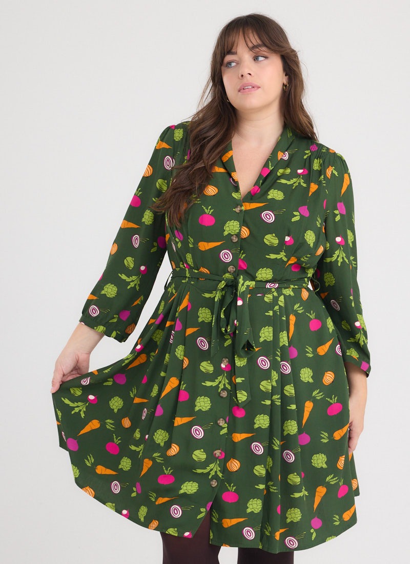 Barbara Vegetable Print Button-Through Dress