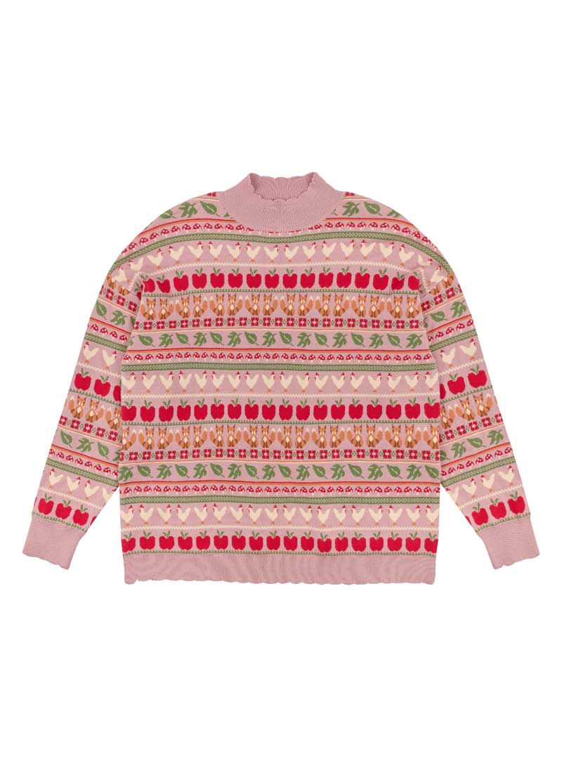 Charly Farmyard Fair Isle Scalloped Knitted Jumper