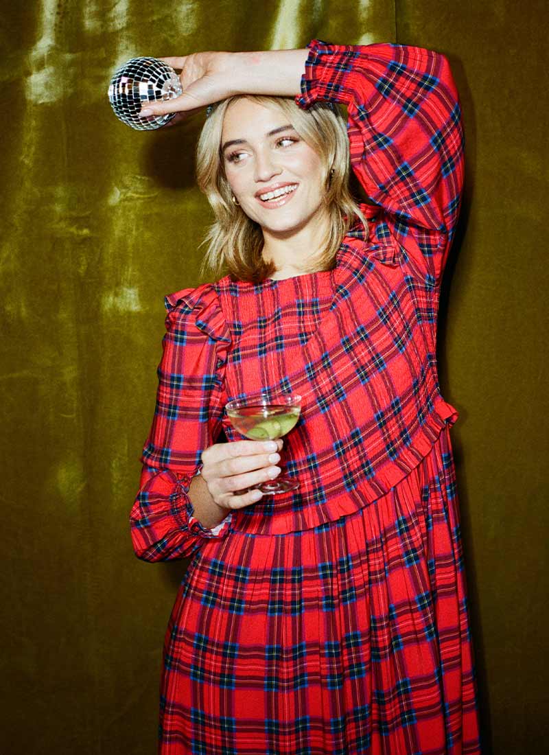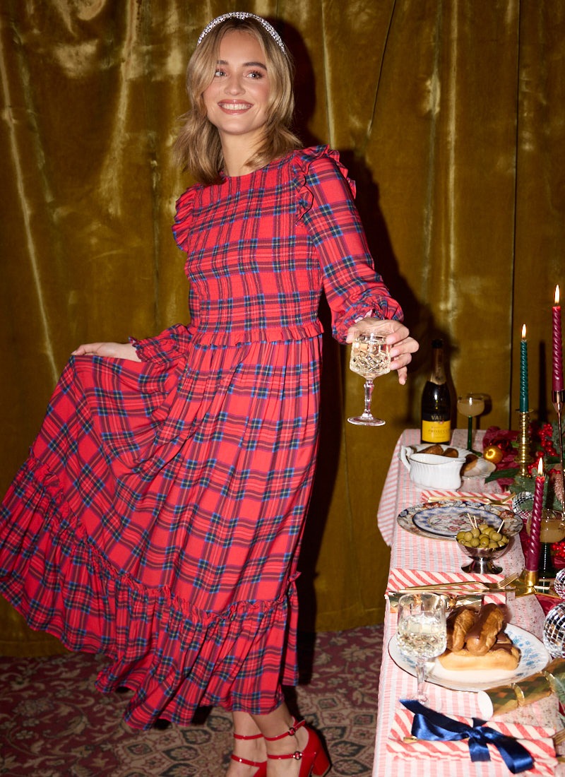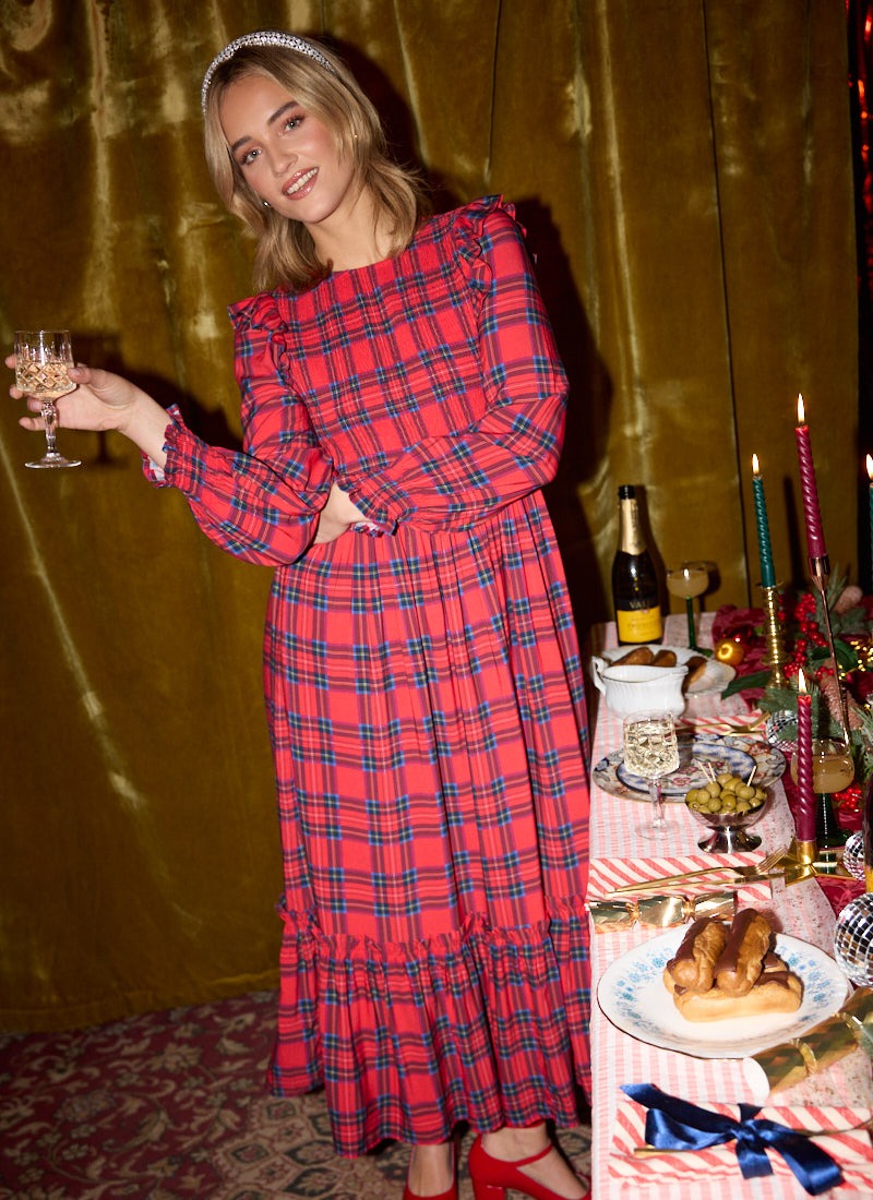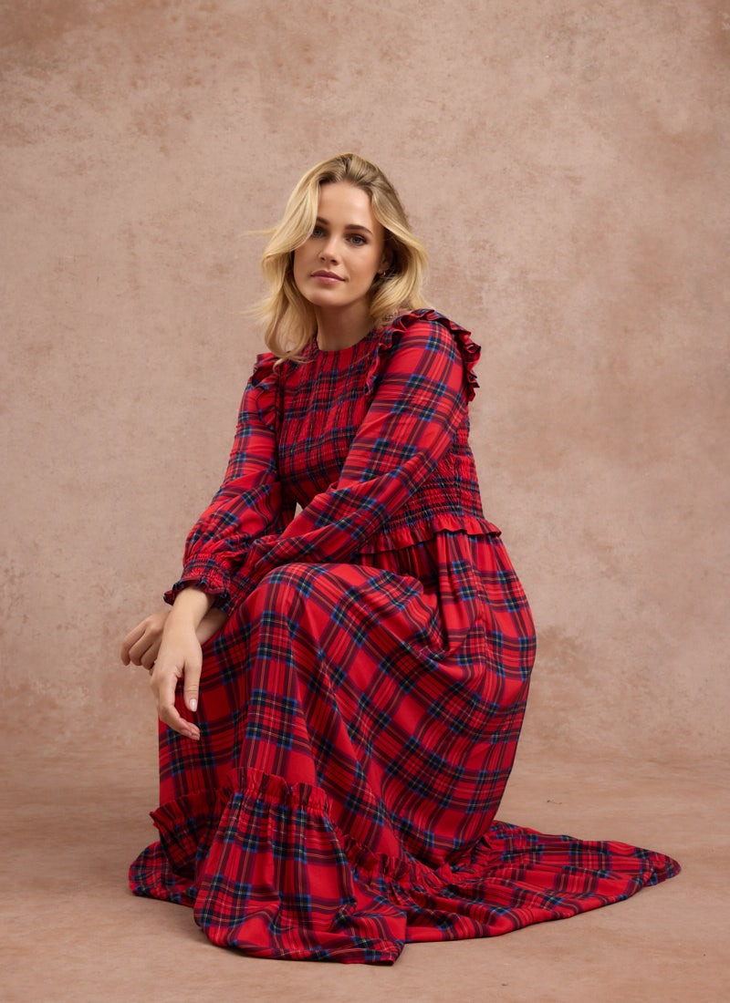 Jemima Square Neck Polka Dot Mesh Dress - Scarlet