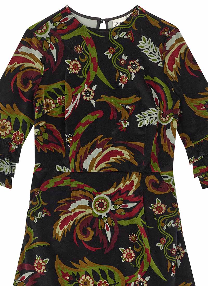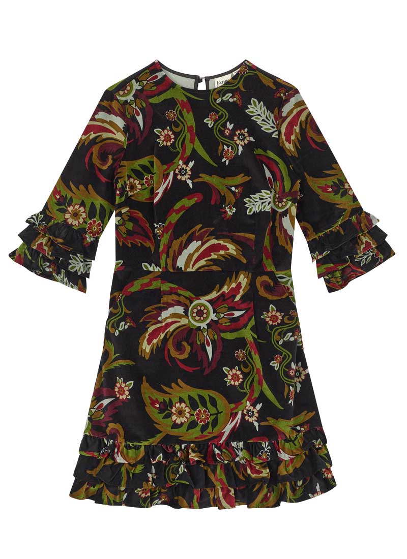 Bellisima Paisley Print Velvet Ruffle Mini Dress