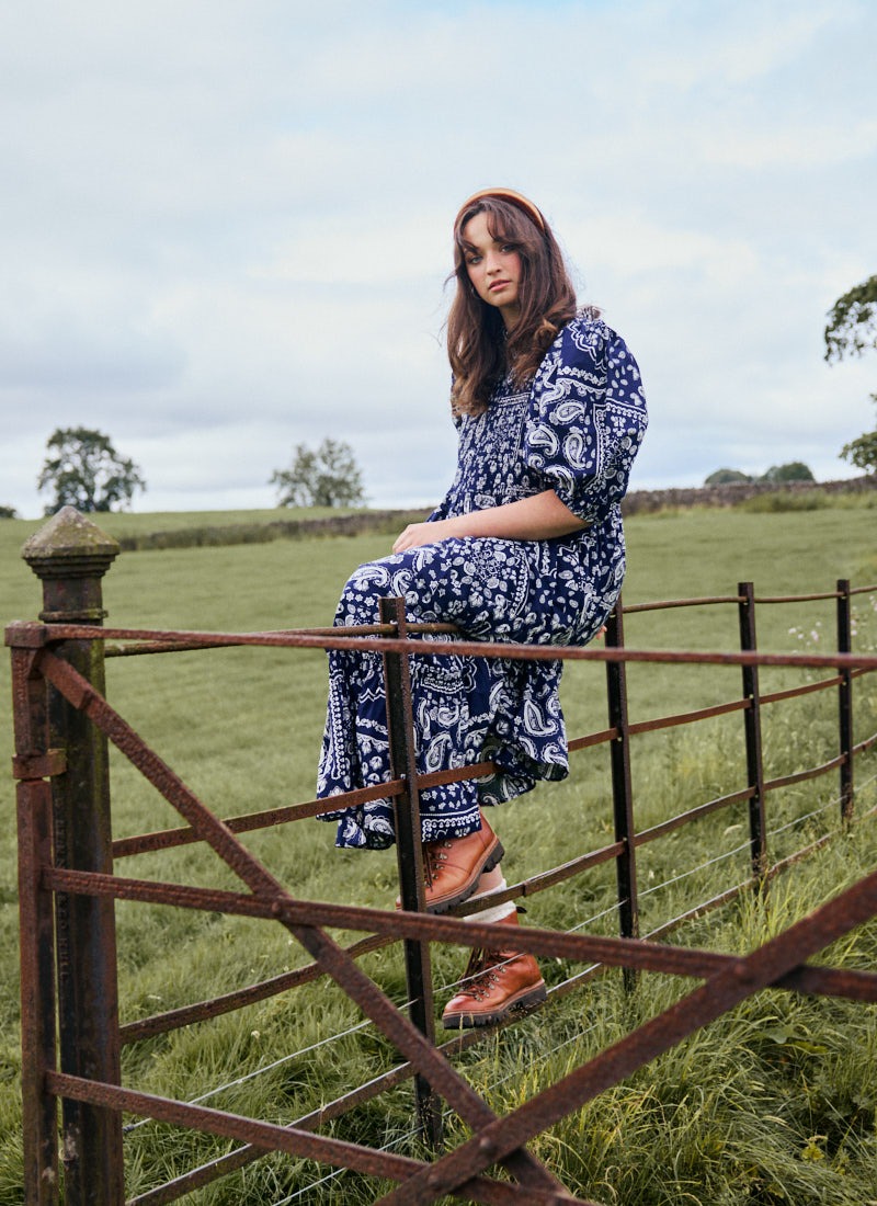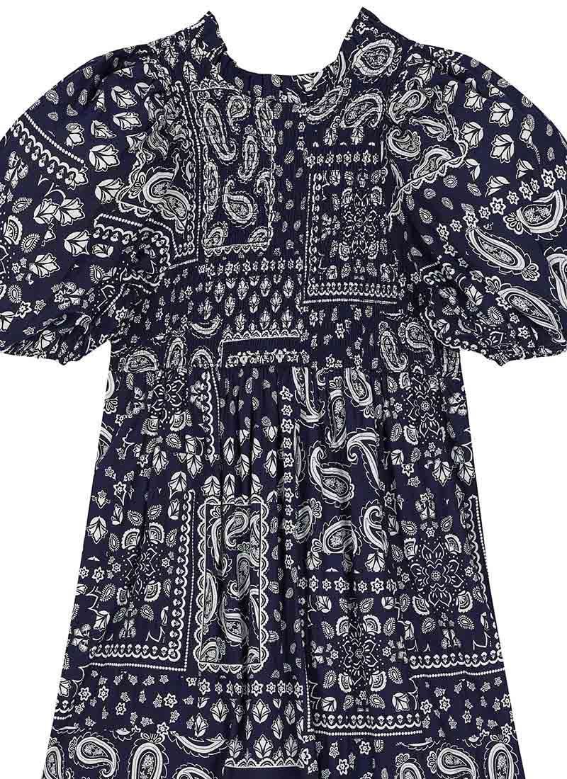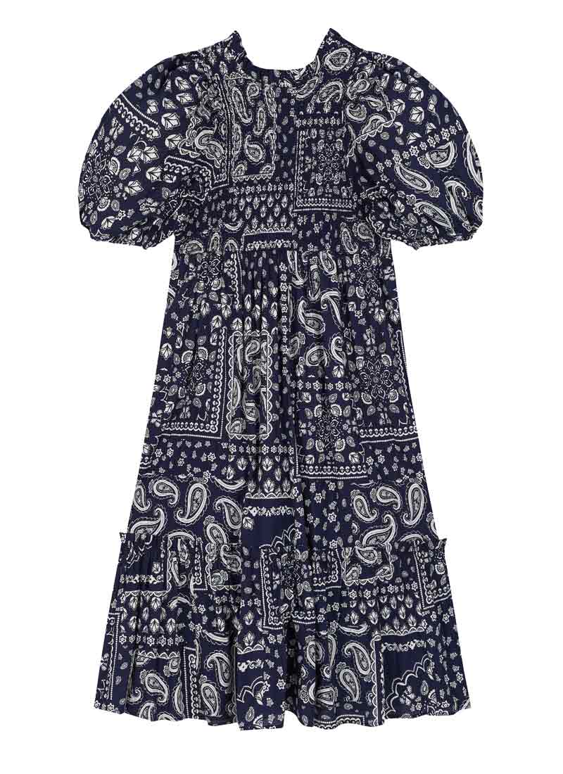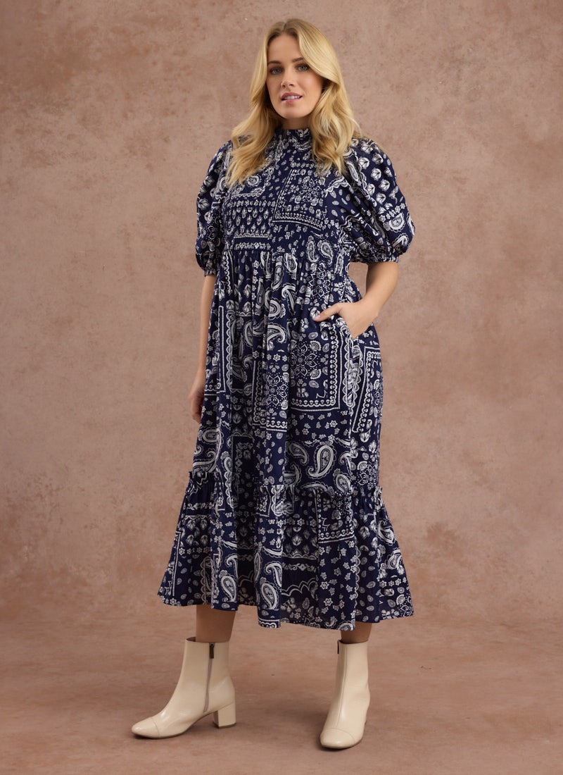 Priya Bandana Print Puff Sleeve Midi Dress