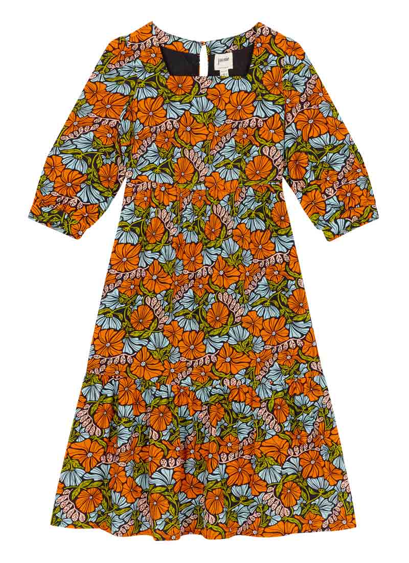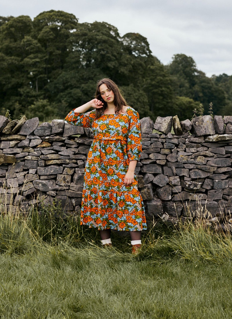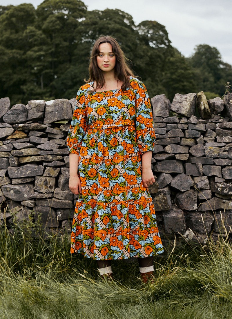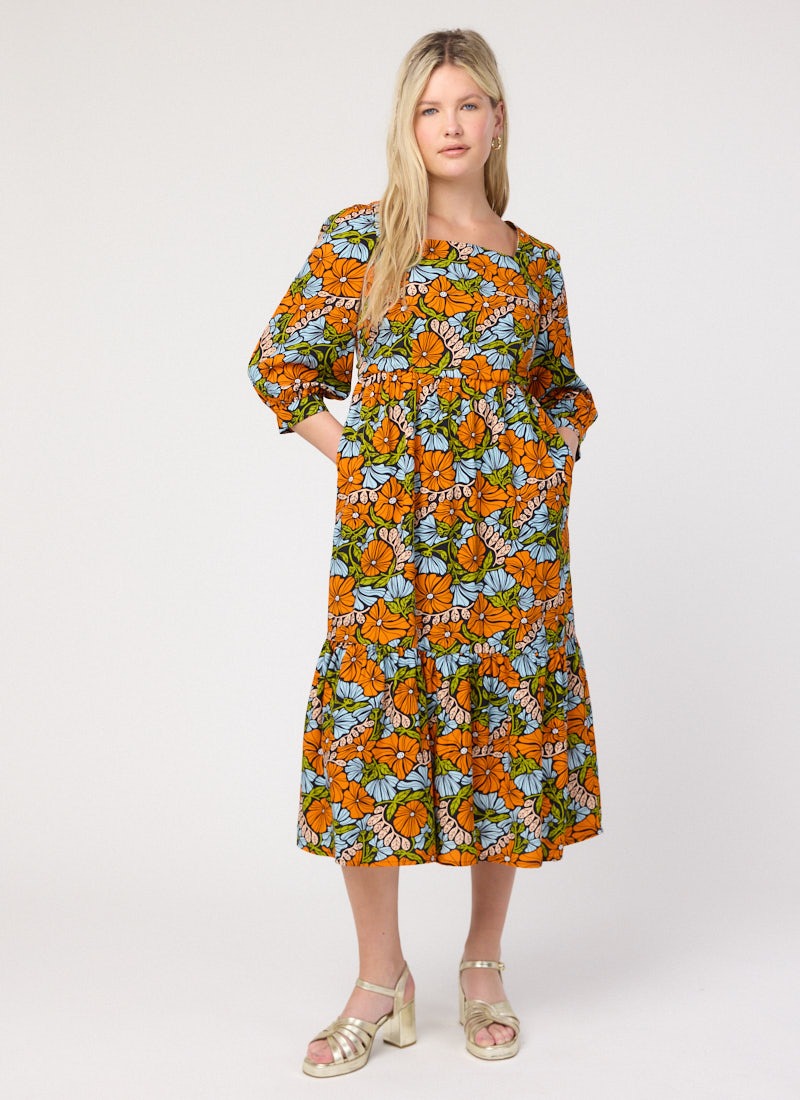 Candi Vintage Floral Print Square Neck Midi Dress