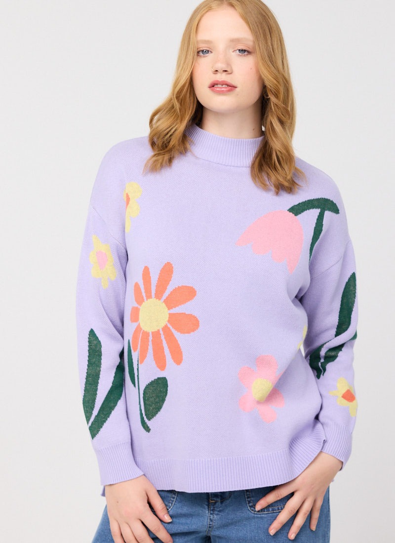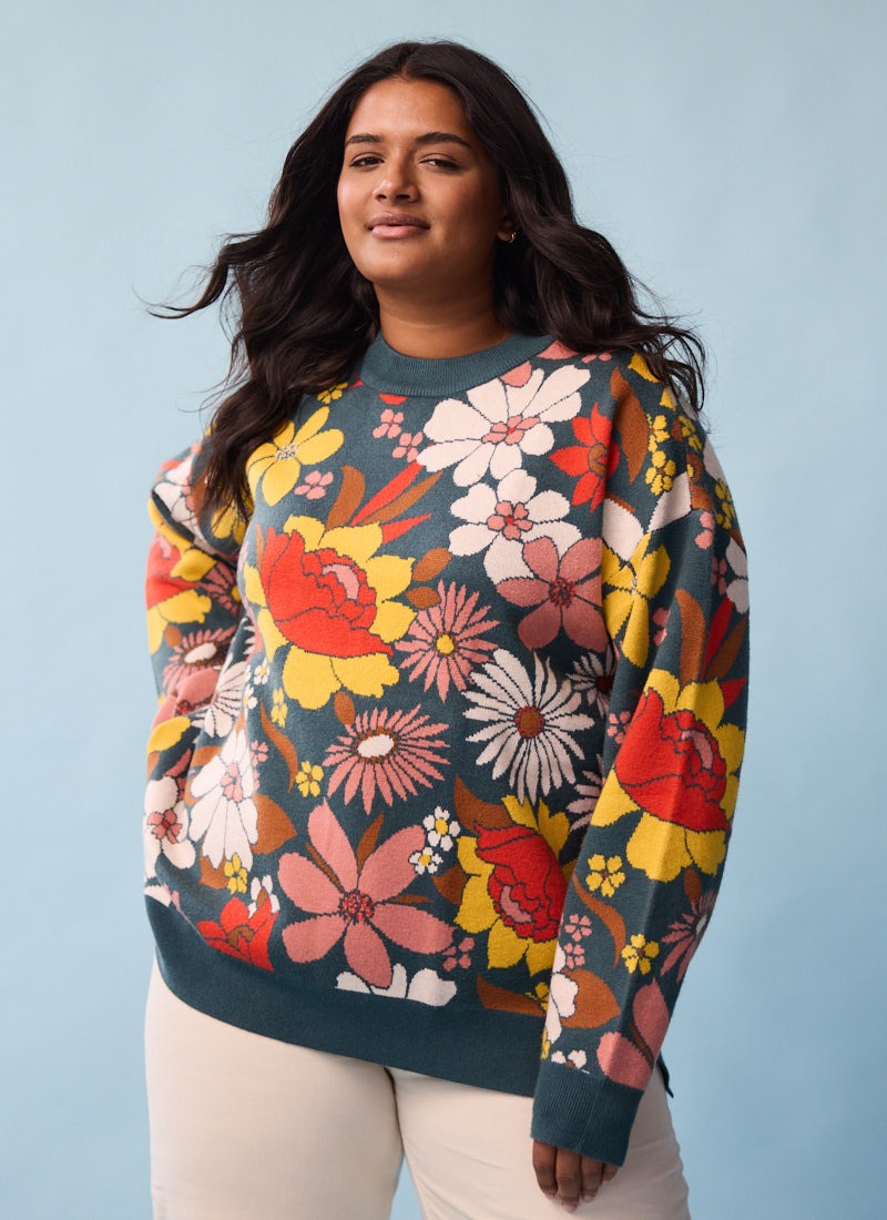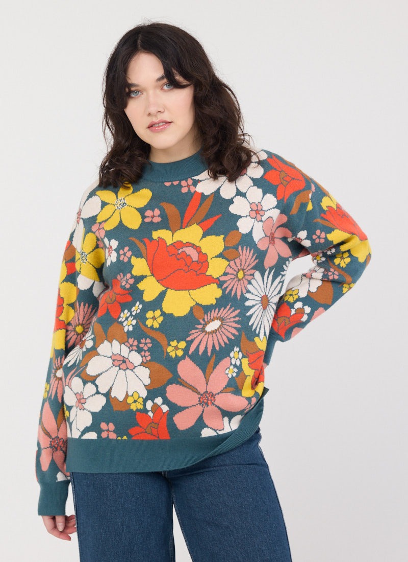 Jude Retro Floral Jacquard Oversized Knitted Jumper