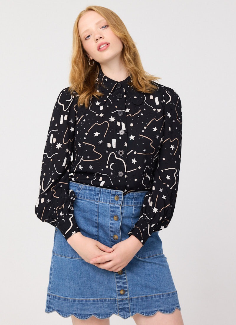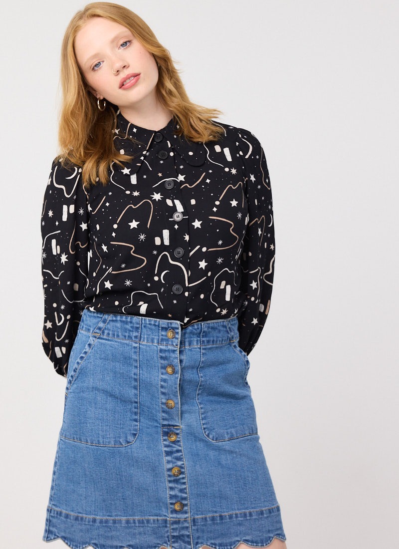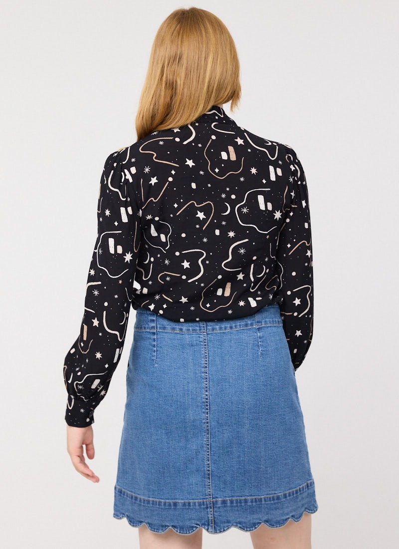 Rebecca Mystical Print Puff Sleeve Midi Dress