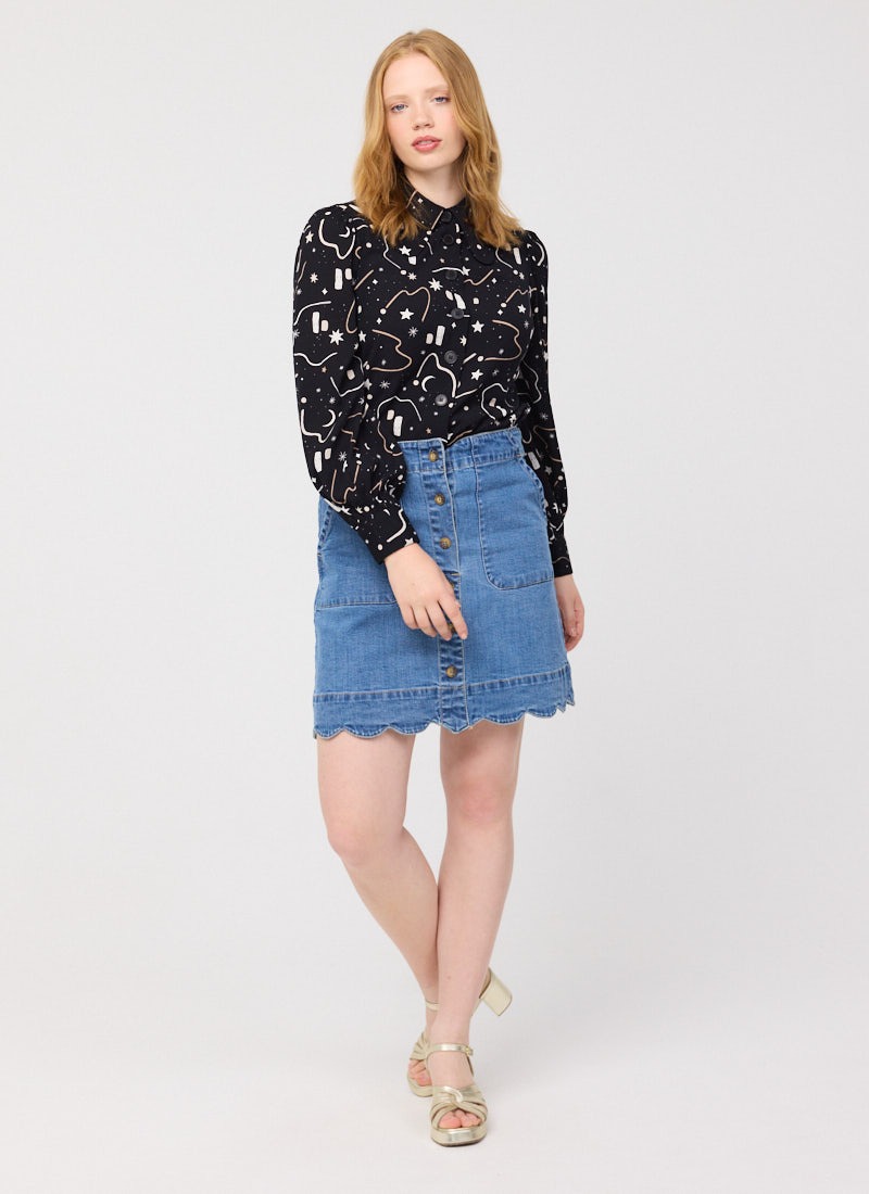 Scarlett Cat Tapestry Print Needlecord Skirt