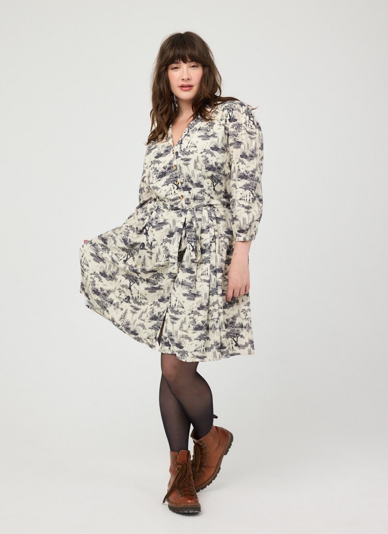 Aiken Cat Tapestry Print Needlecord Pinafore Dress