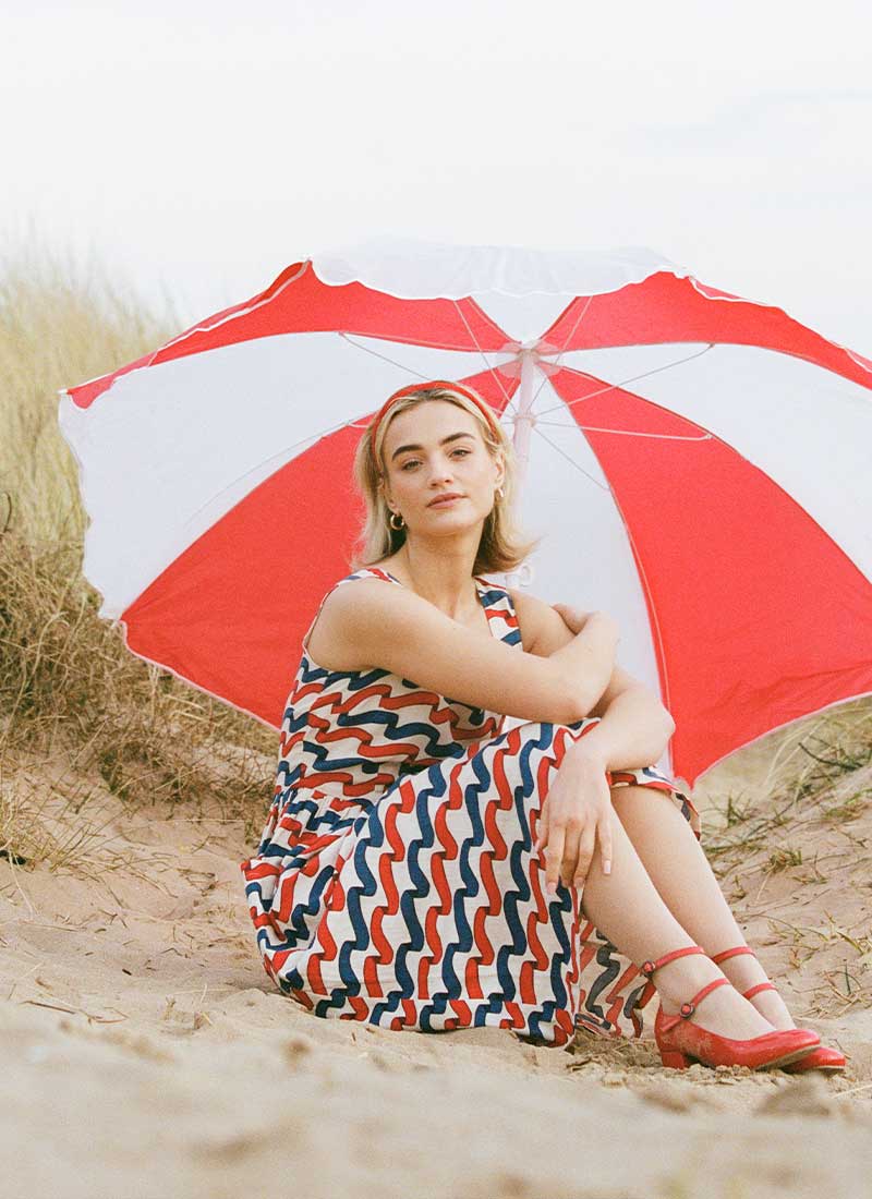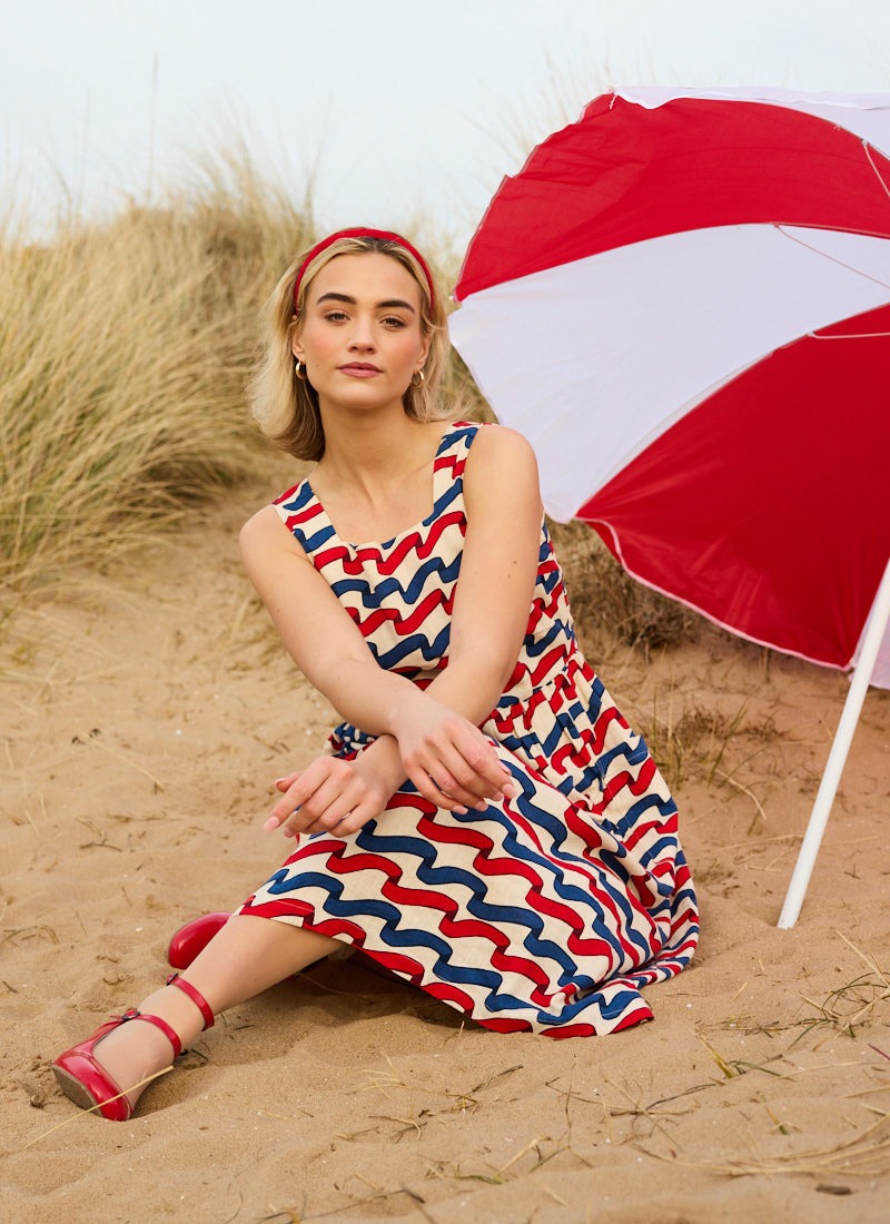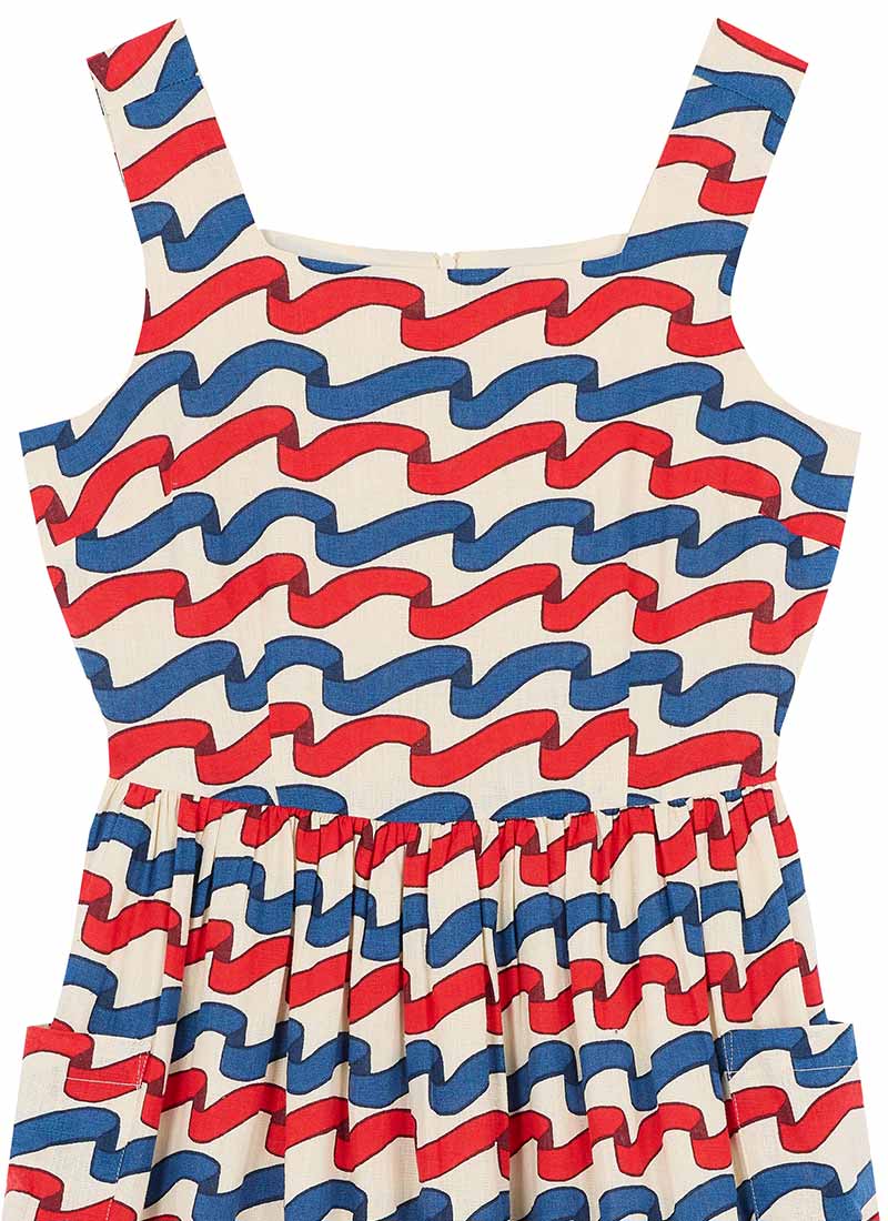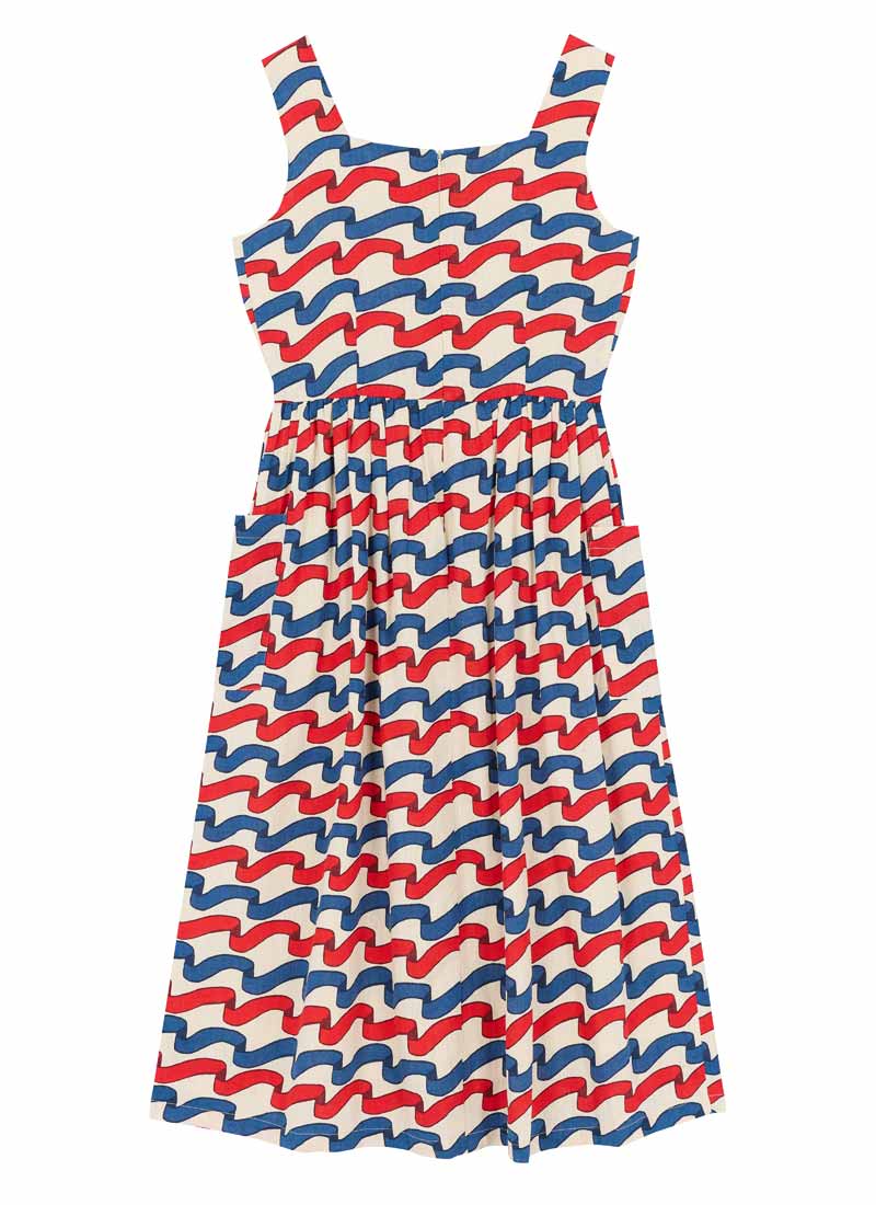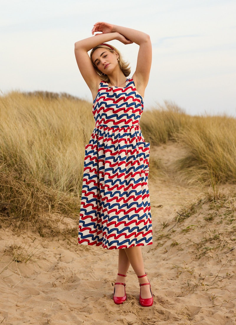 Sandy Square Neck Ribbon Stripe Print Midi Dress