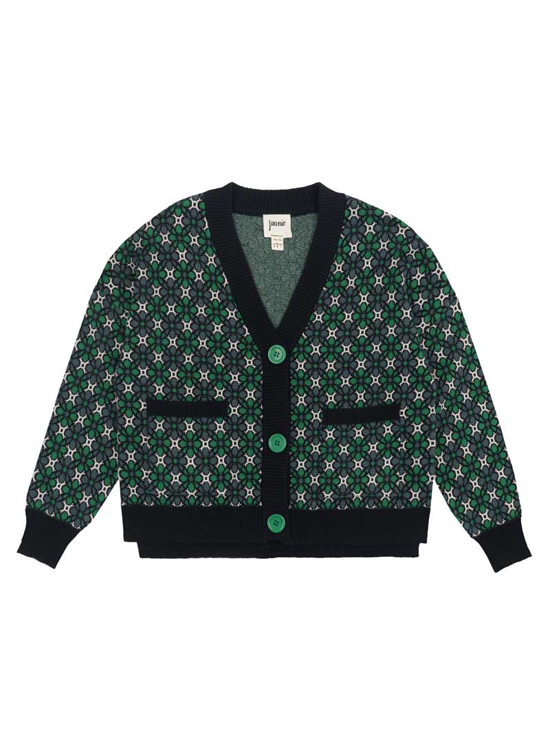 Lovelace Green Geometric Intarsia Oversized Cardigan