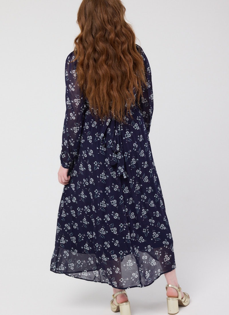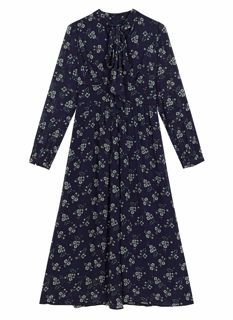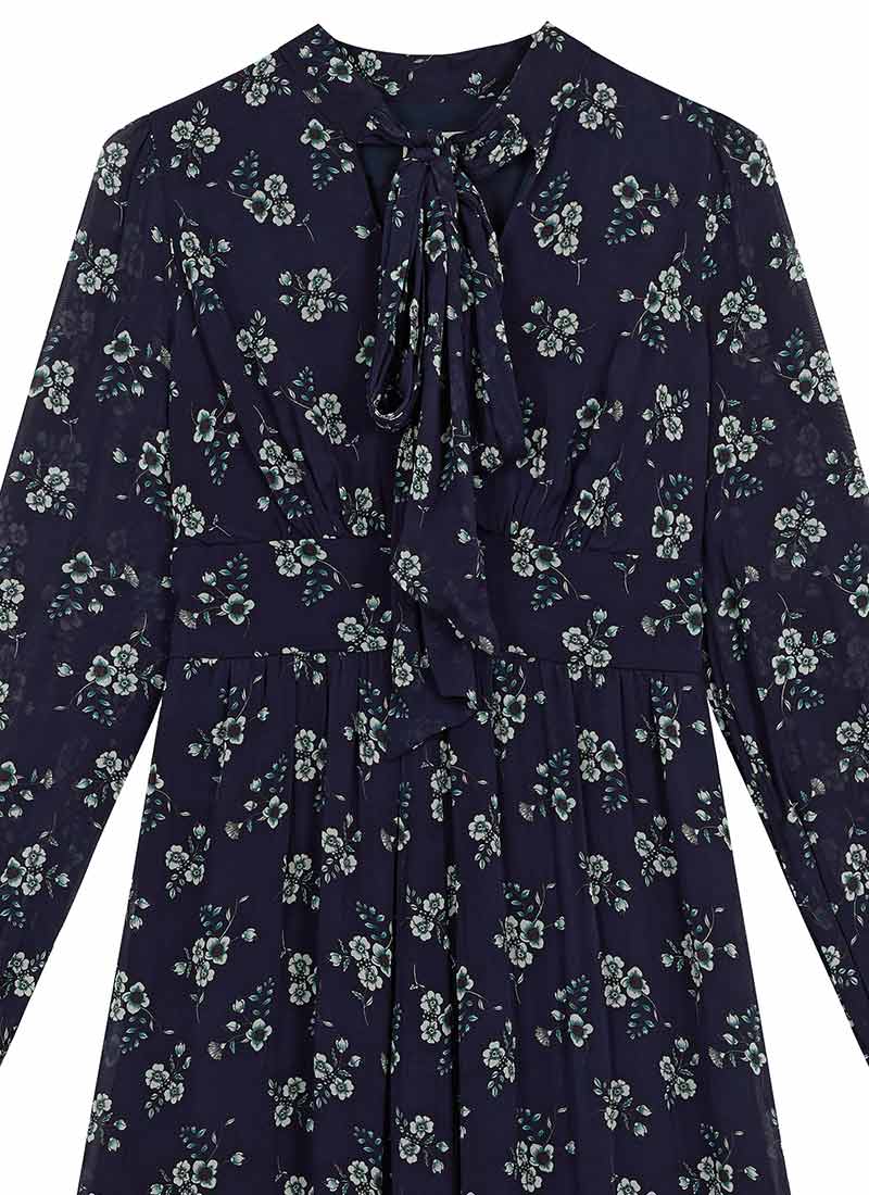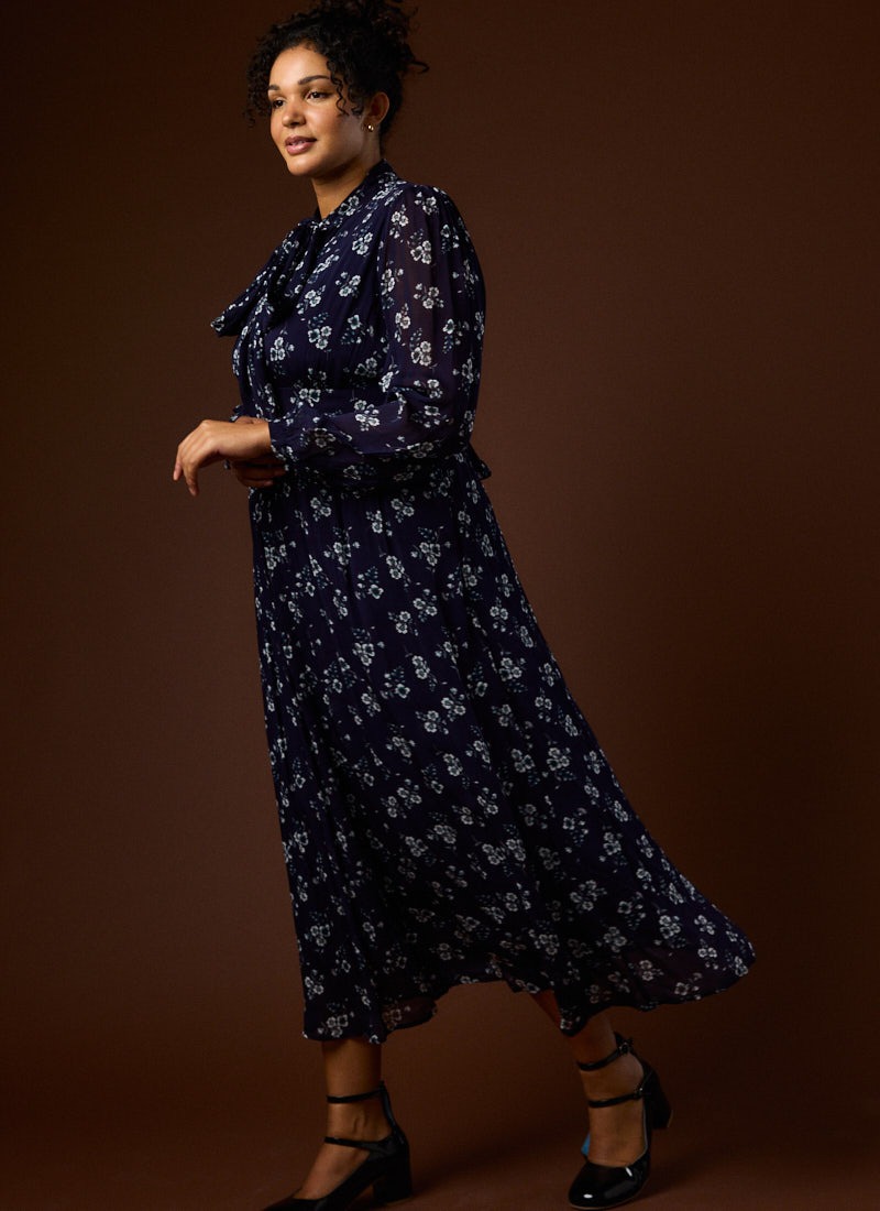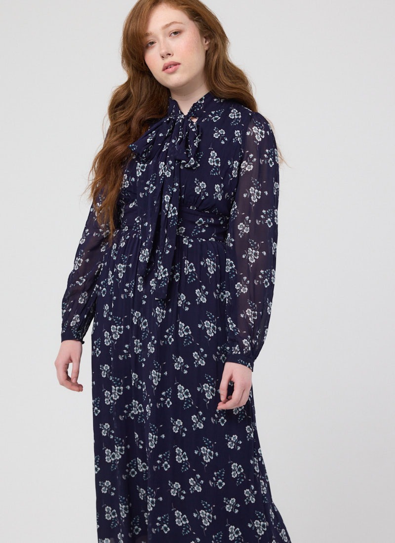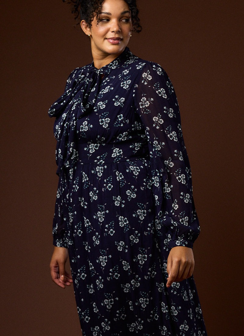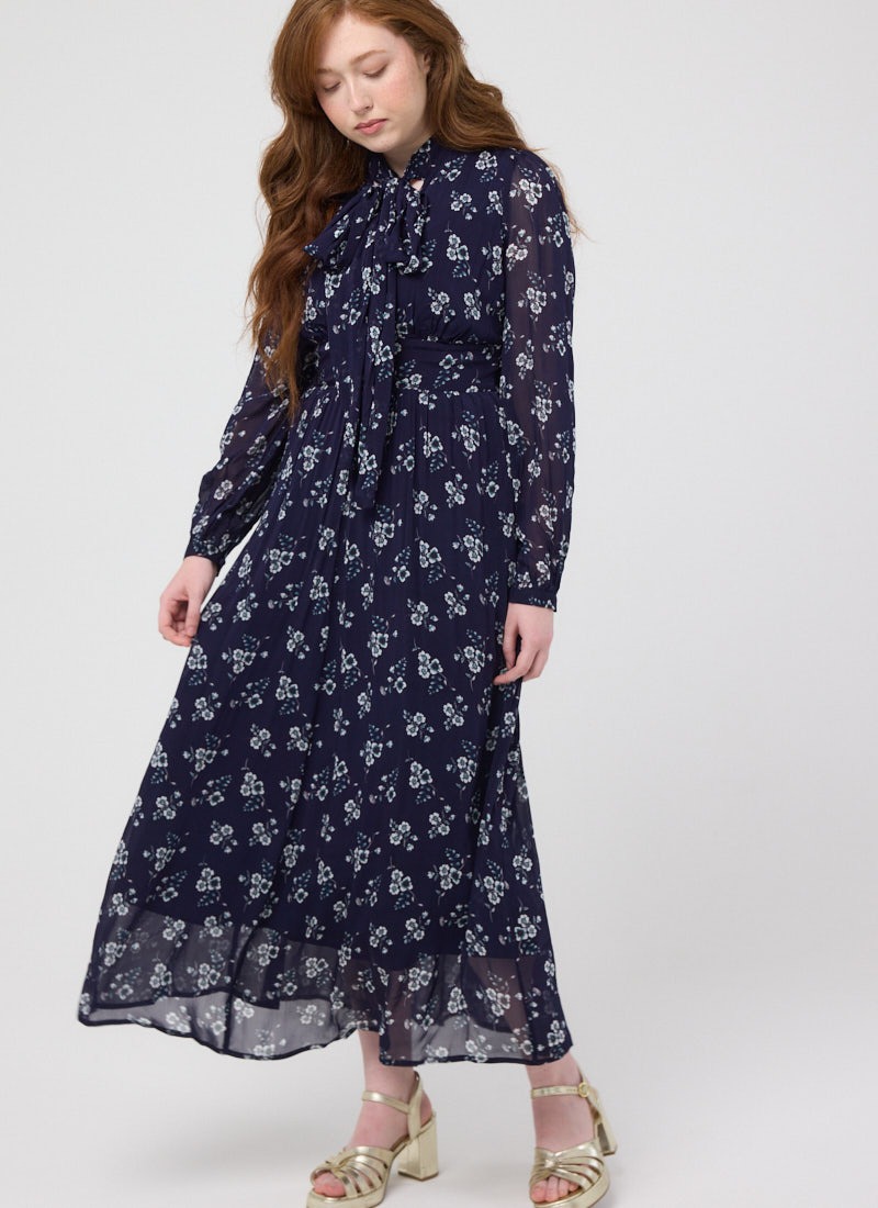 Lavinia Floral Print Pussybow Midaxi Dress - Navy