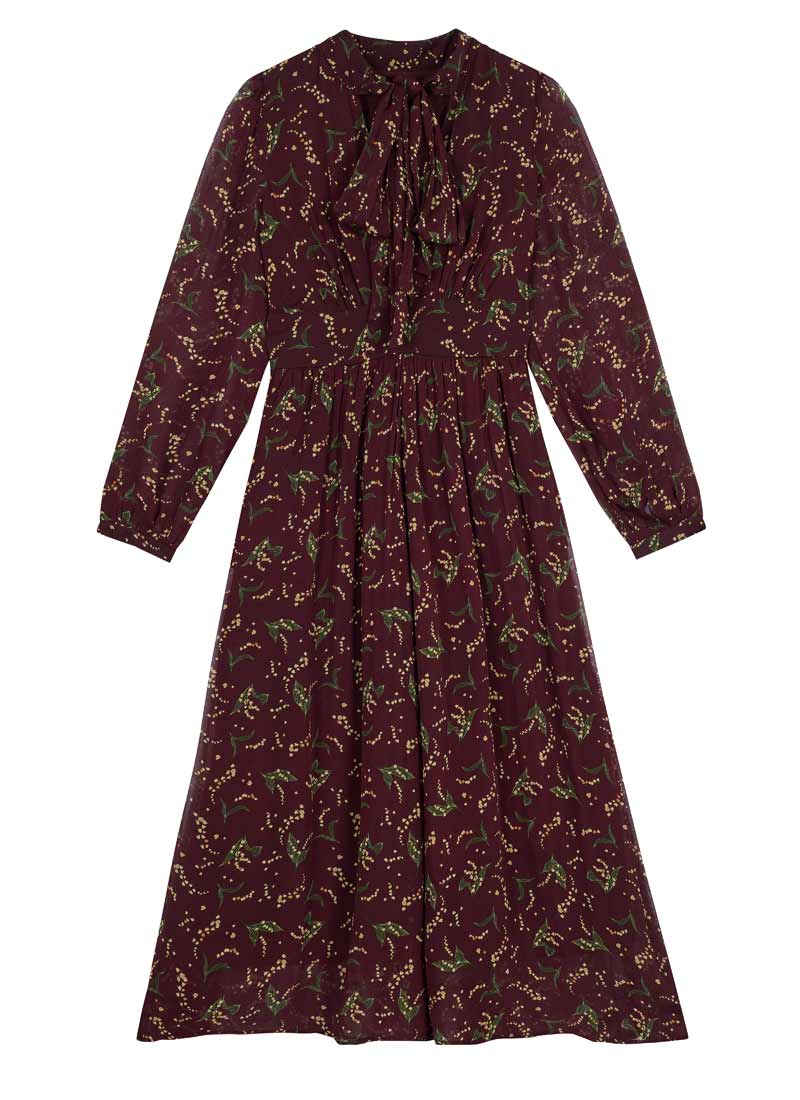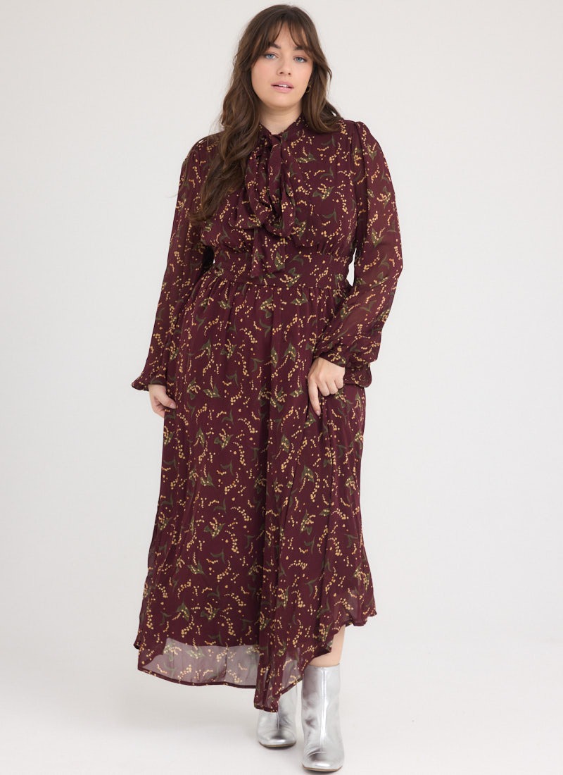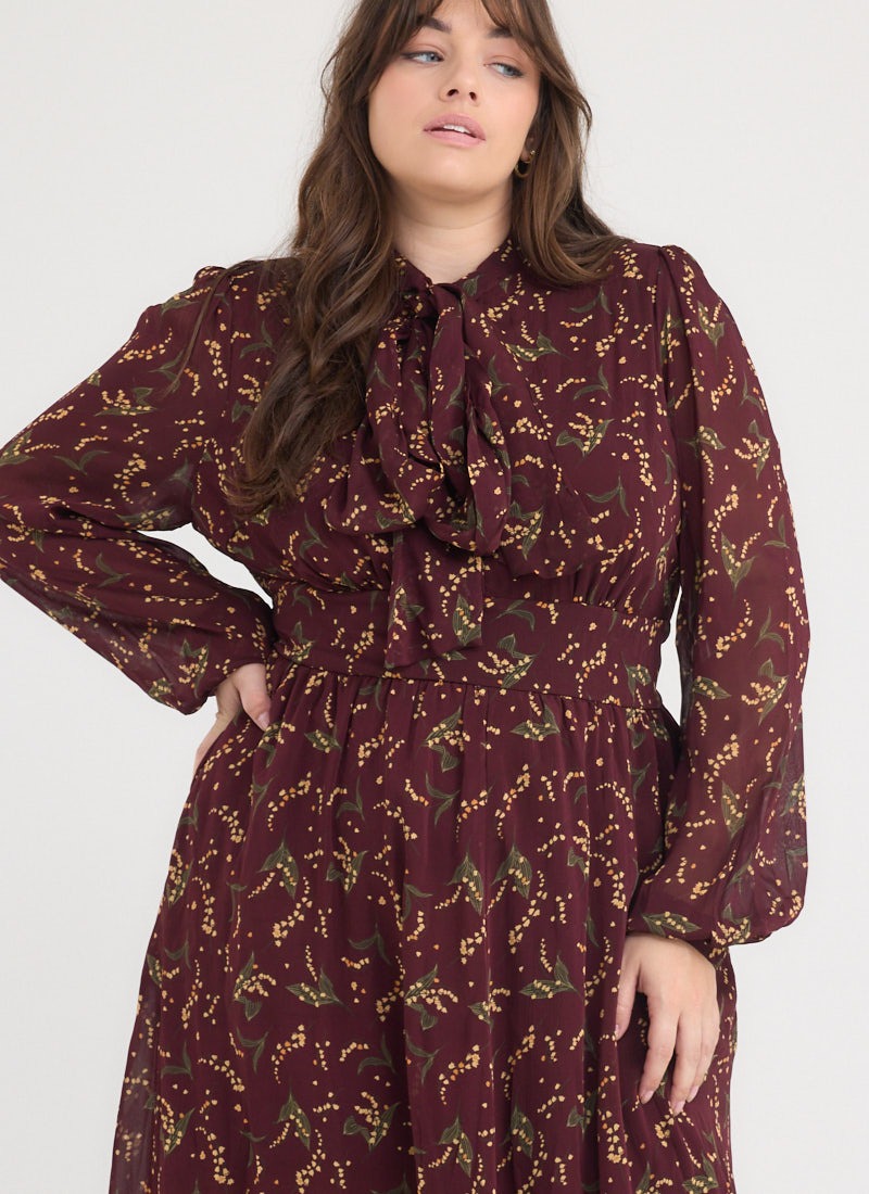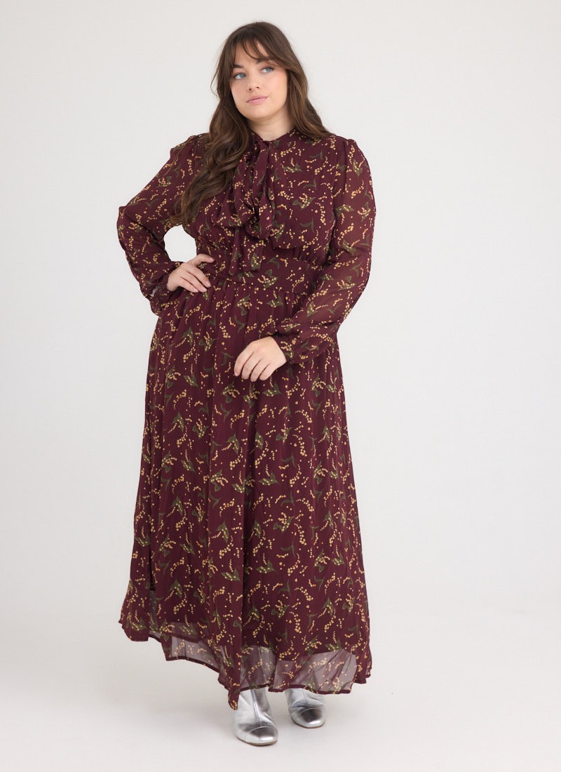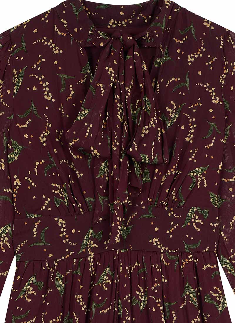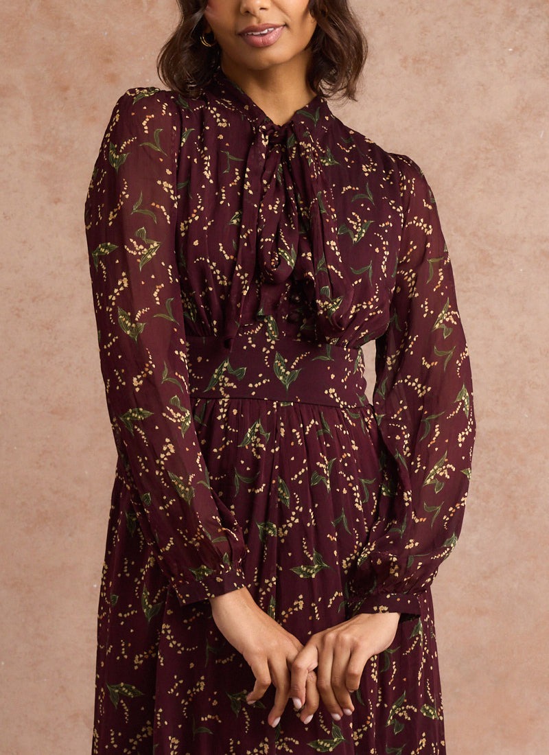 Lavinia Floral Print Pussybow Midaxi Dress - Burgundy