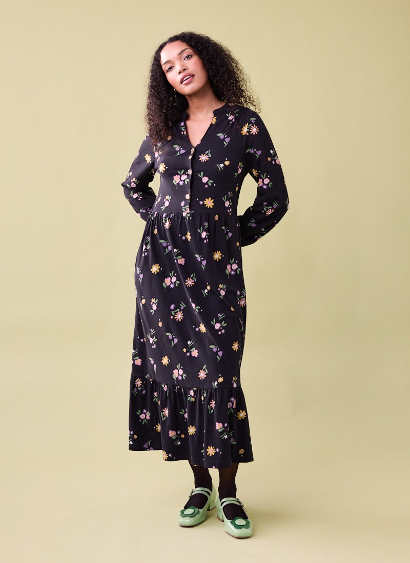 Heath Ditsy Floral Print Jersey Midi Dress