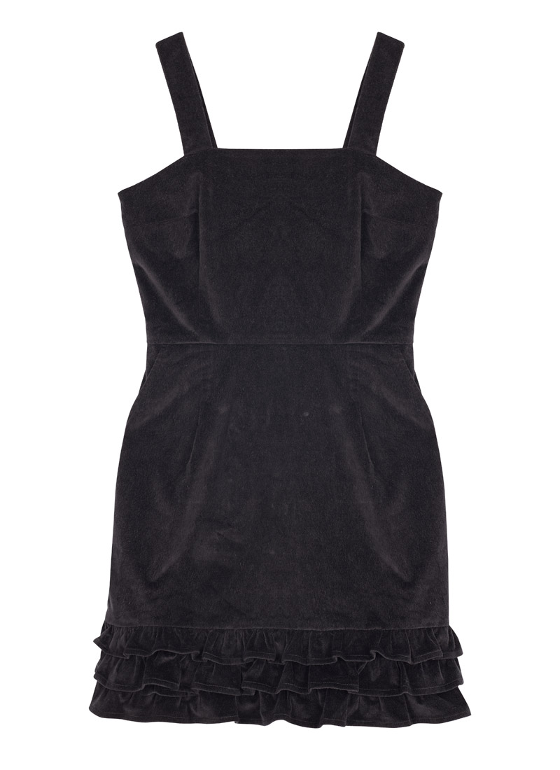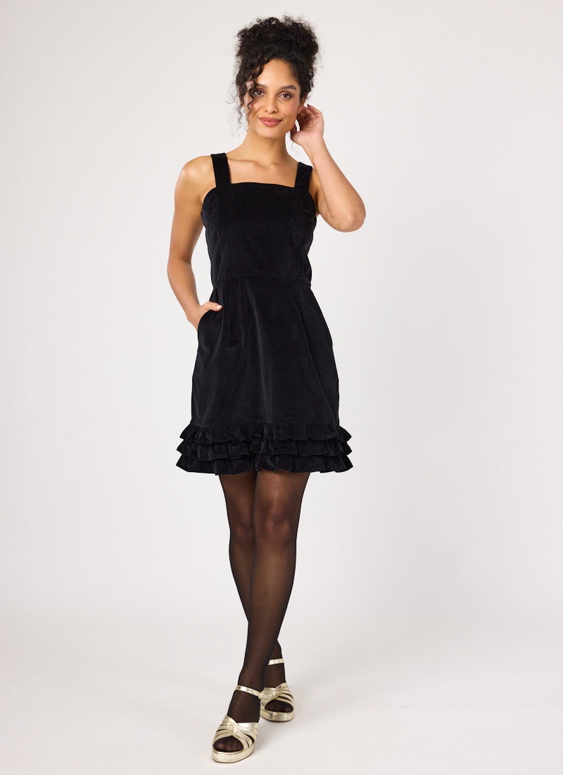 Gertie Square Neck Velvet Ruffle Pinafore Dress
