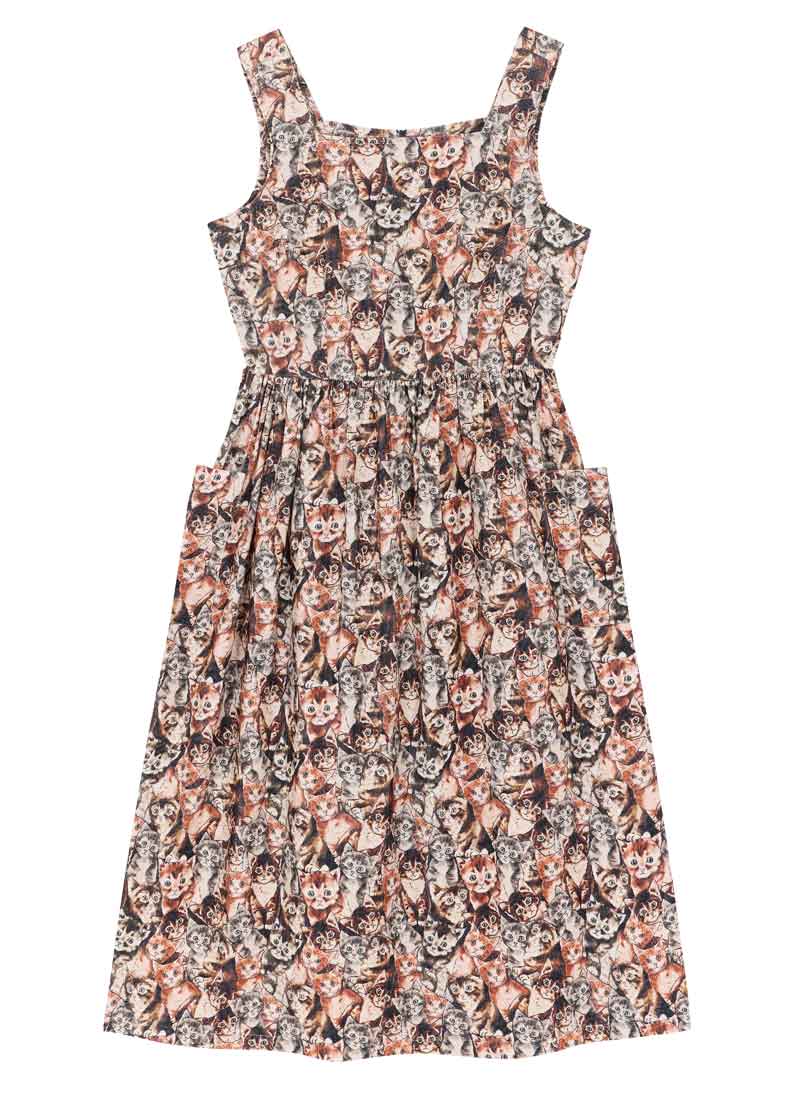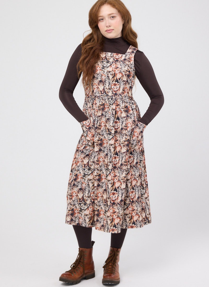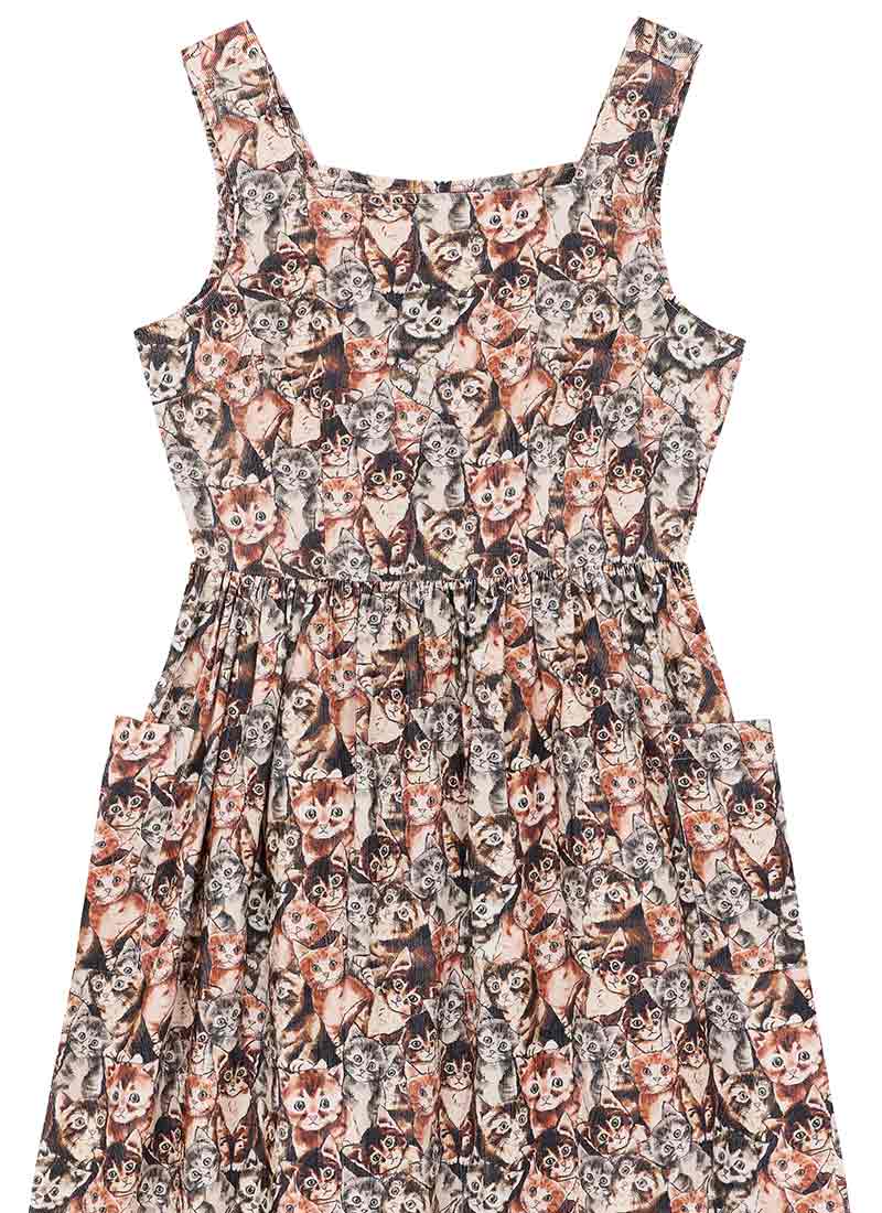 Aiken Cat Tapestry Print Needlecord Pinafore Dress