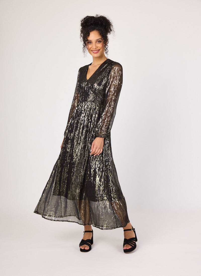 Gaia Gold Lurex V-Neck Midaxi Dress