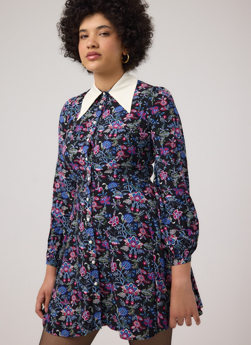 Jenna Jacobean Print Dagger Collar Mini Dress