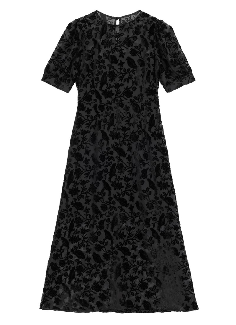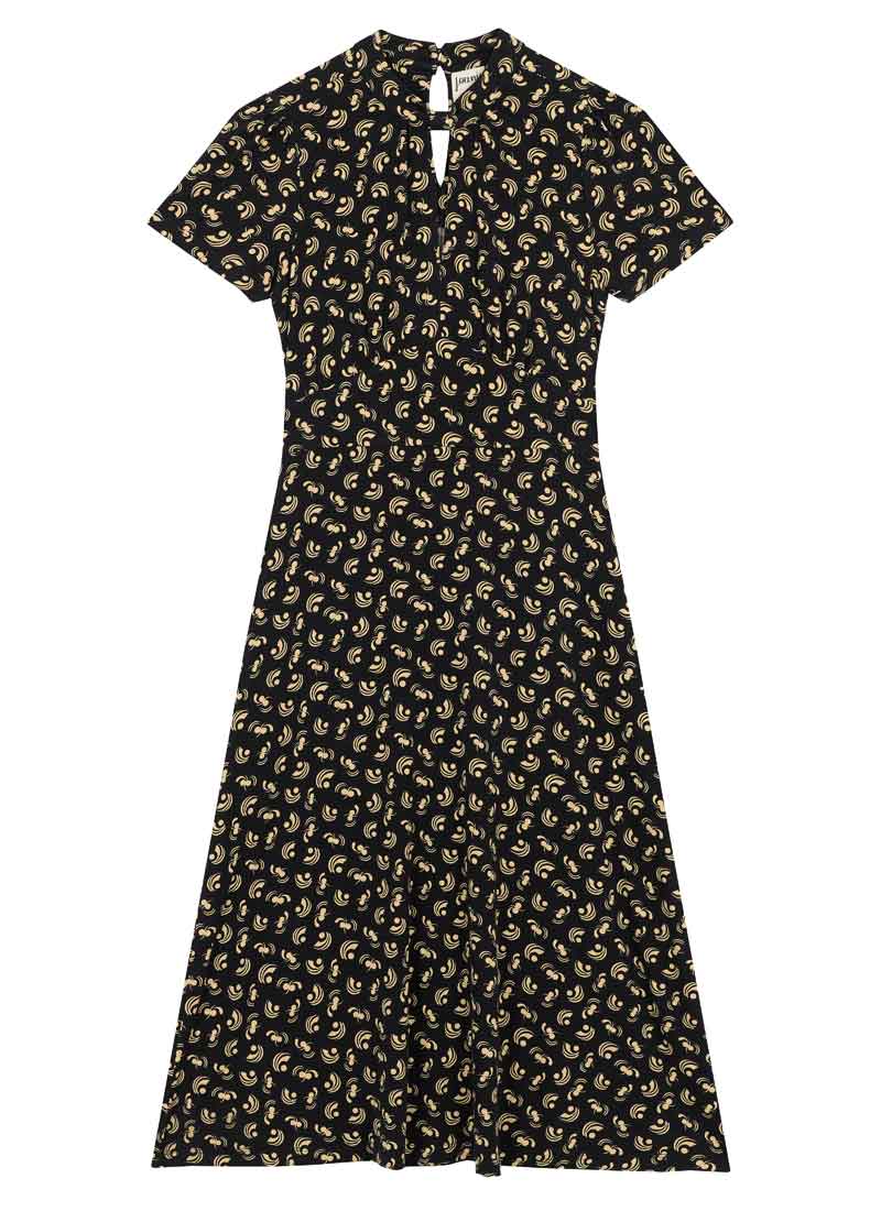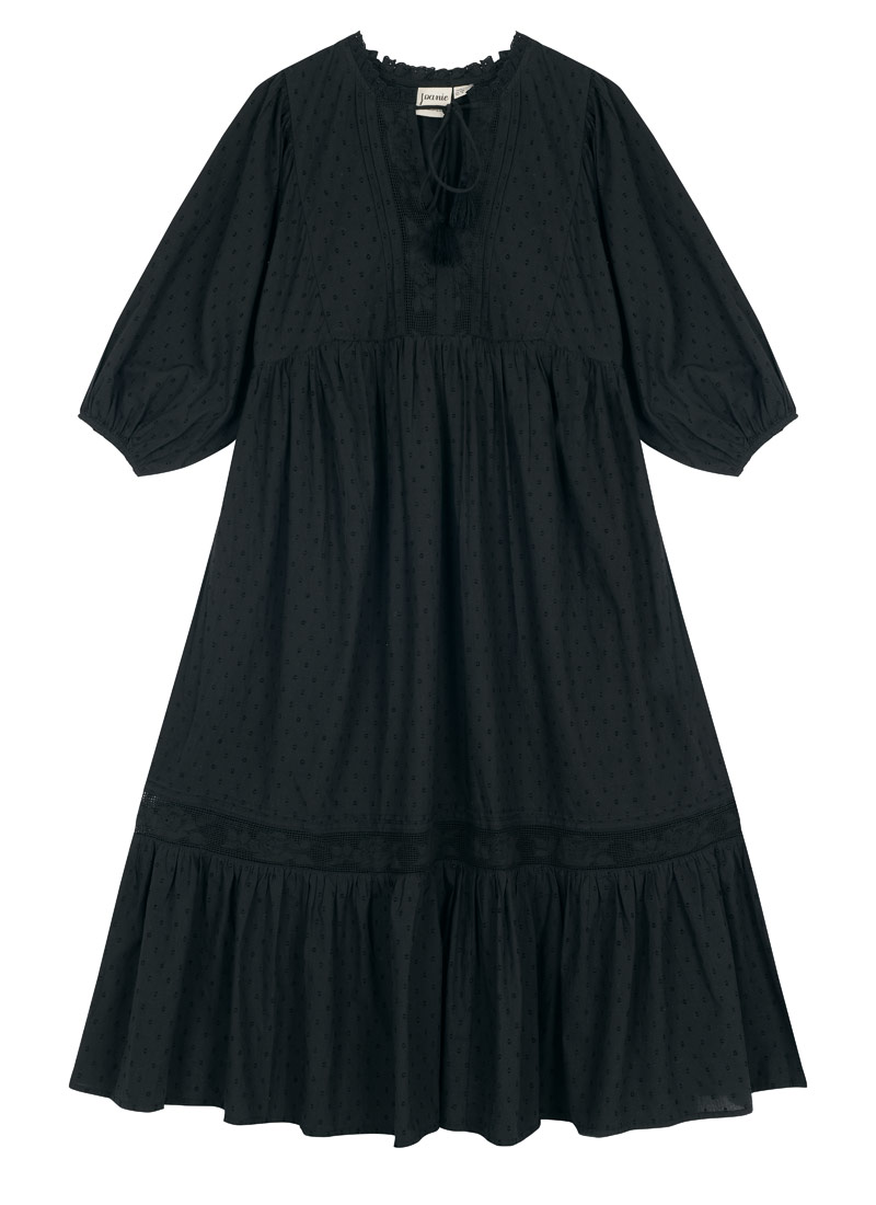 Meryl Tie Neck Dobby Midi Dress - Black